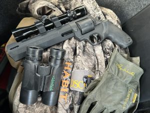 On this particular hunt I was hunting with my Taurus Raging Hunter .454 Casull handgun topped with a 2.5-7×28 Thompson/Center long-eye relief scope circa late 1900’s. That scope along with those manufactured by Simmons Optics during that time frame were and continue to be the finest and best handgun scopes ever made. They are unbelievably rugged and tough and have very forgiving eye relief, the distance you have to hold a scope far enough away from your eye to see the full value of the scope’s view. These remain far better than any of the newer handgun scopes I have used in recent years.
