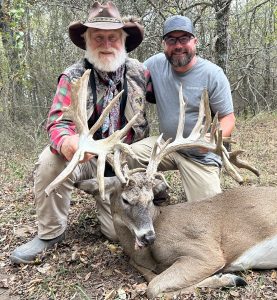 Now before someone says “Oh yeah! That’s a high-fence buck, probably out of a breeder program.” I will not disagree! I make no claims about being the “mighty” hunter for shooting this monstrously antlered buck. I will have my buck mounted by Double Nickle Taxidermy (www.doublenickletaxidermy). Every time I look at him on my wall I will remember Dusty, Jim, Jesse and me hunting together, the fun we had, the circumstances involved in my shooting a buck whose head and antlers I could not see.